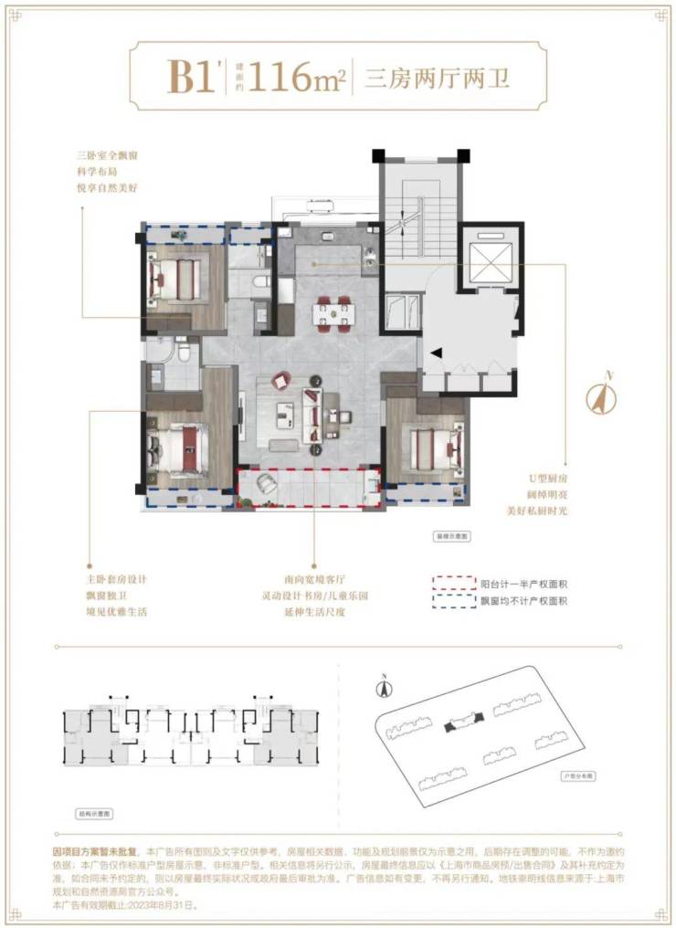 浦东曹路新盘,建发联发·青云上建面约95-116㎡3房户型首发,预计9月初巡展