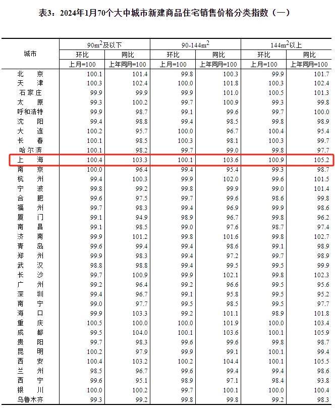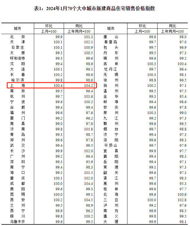 统计局:1月商品住宅销售价格环比降幅收窄,上海环比上涨0.4%