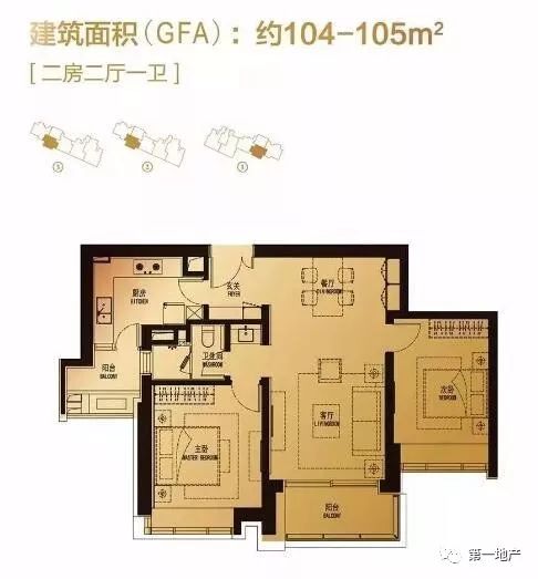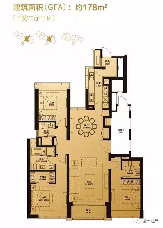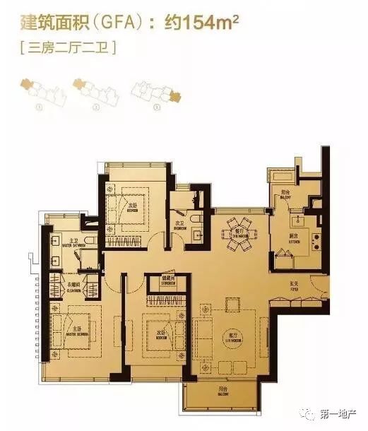 此次预售房源为1号楼和3号楼,总共242套。分为三个户型,分别是建面约105㎡的2房、建面约155㎡的3房和建面约177㎡的3房。