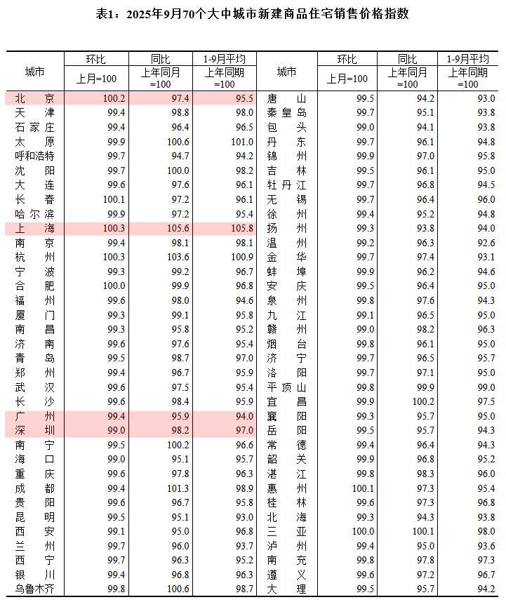 9月份70个大中城市房价指数公布:上海新房价格继续涨