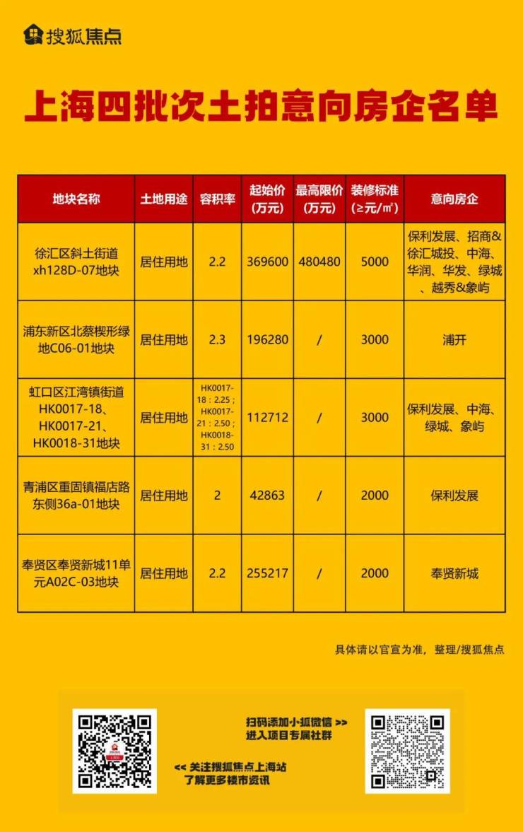 此外虹口地块共吸引4家意向房企,而浦东、青浦、奉贤地块则都是仅有1家托底单位。