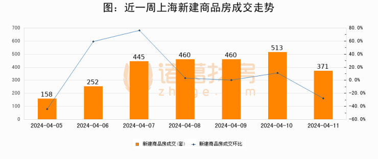 【上海成交日报】04月11日新房成交371套;涨价房源144套