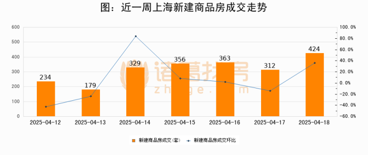 【上海成交日报】04月18日新房成交424套、二手房817套;涨价房源168套