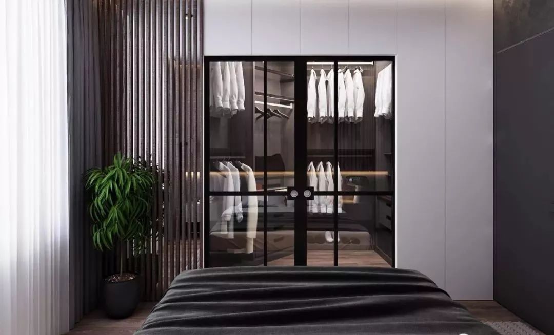 衣帽间:黑框玻璃门会给人带来视觉上的阔然,显得比较通透。