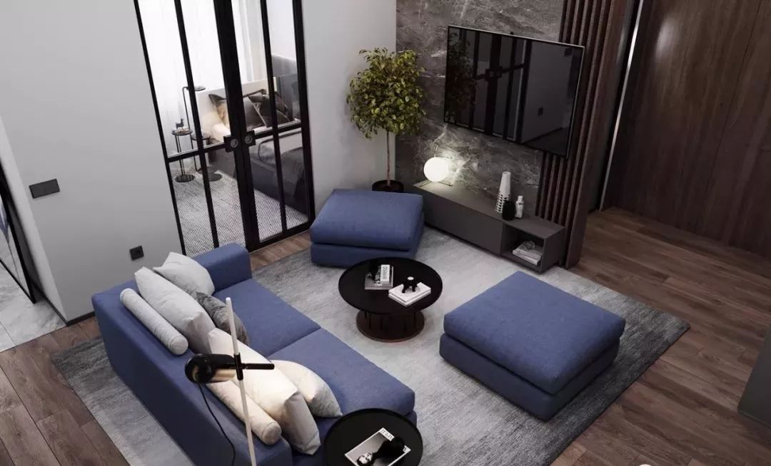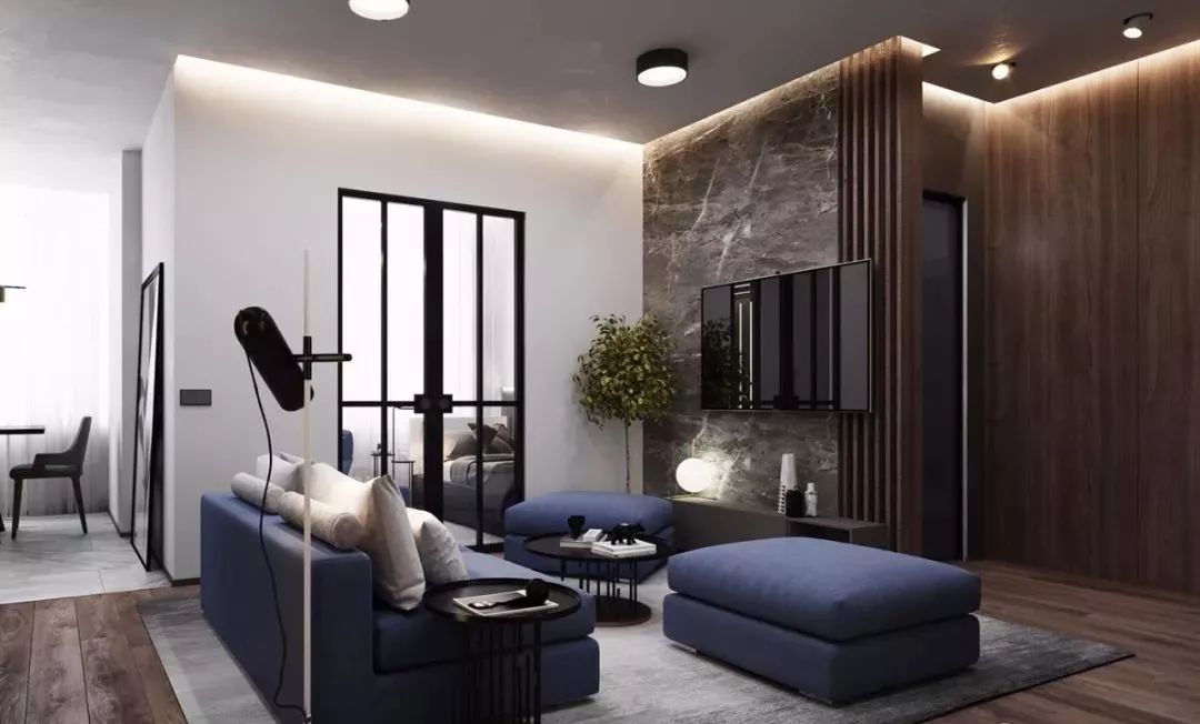 沙发选用蓝色,让略显沉闷的客厅立刻鲜活,打造成为不折不扣的视觉中心区域。
