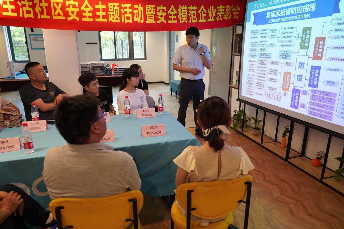 活动伊始,乐璟生活社区的HSE部门负责人与企业代表们分享了住宿安全知识,通过列举具体经典案例,分析原因,总结相关要点,以视频加图片的形式介绍了“住宿安全十不准”等安全知识及注意事项。活动中,HSE负责人还讲解了乐璟如何利用自主研发的大社区SaaS管理系统来链接所有社区内的消防、安全设施,从而使得乐璟社区的安全达到了动态监控、瞬时响应等安全标准。