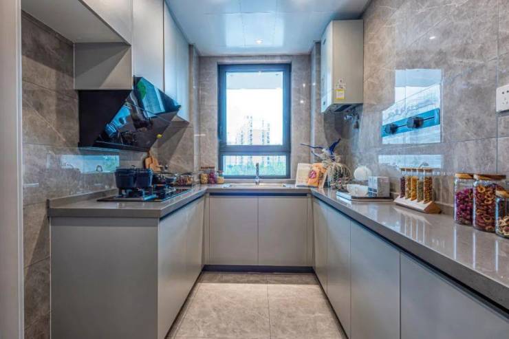 U型厨房人性化布局,洗涤区、烹饪区等空间功能划分明确,让洗切炒一气呵成。在为操作提供便利的同时,也带来温馨的烹煮日常。