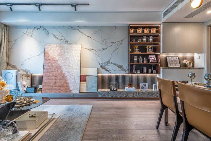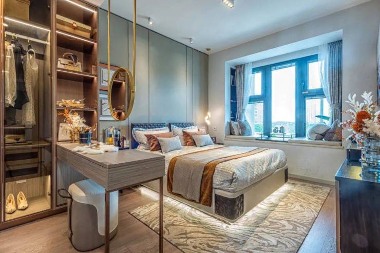 功能趋于完善,一个平层即可实现寝居、社交、娱乐等多重功能。区别于别墅的垂直空间,扁平化的功能空间,动线更简单,就寝区、步入式衣帽间、卫浴间层层递进,收获了不少高质生活家庭的拥簇。