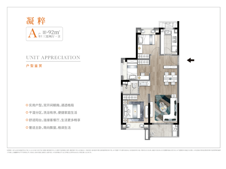 建筑面积约92㎡舒居三房总价约420万起,居住功能完善,小面积也有大作为。