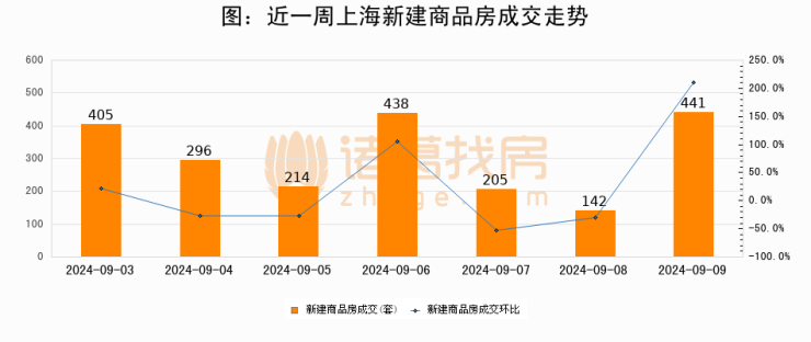 【上海成交日报】09月09日新房成交441套;涨价房源39套