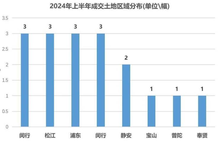 从分布区域看,上半年闵行、松江、浦东、闵行各成交3幅地块,静安成交2幅,宝山、普陀、奉贤各成交1幅,而青浦、嘉定、临港和市中心区域则是“零供应”。