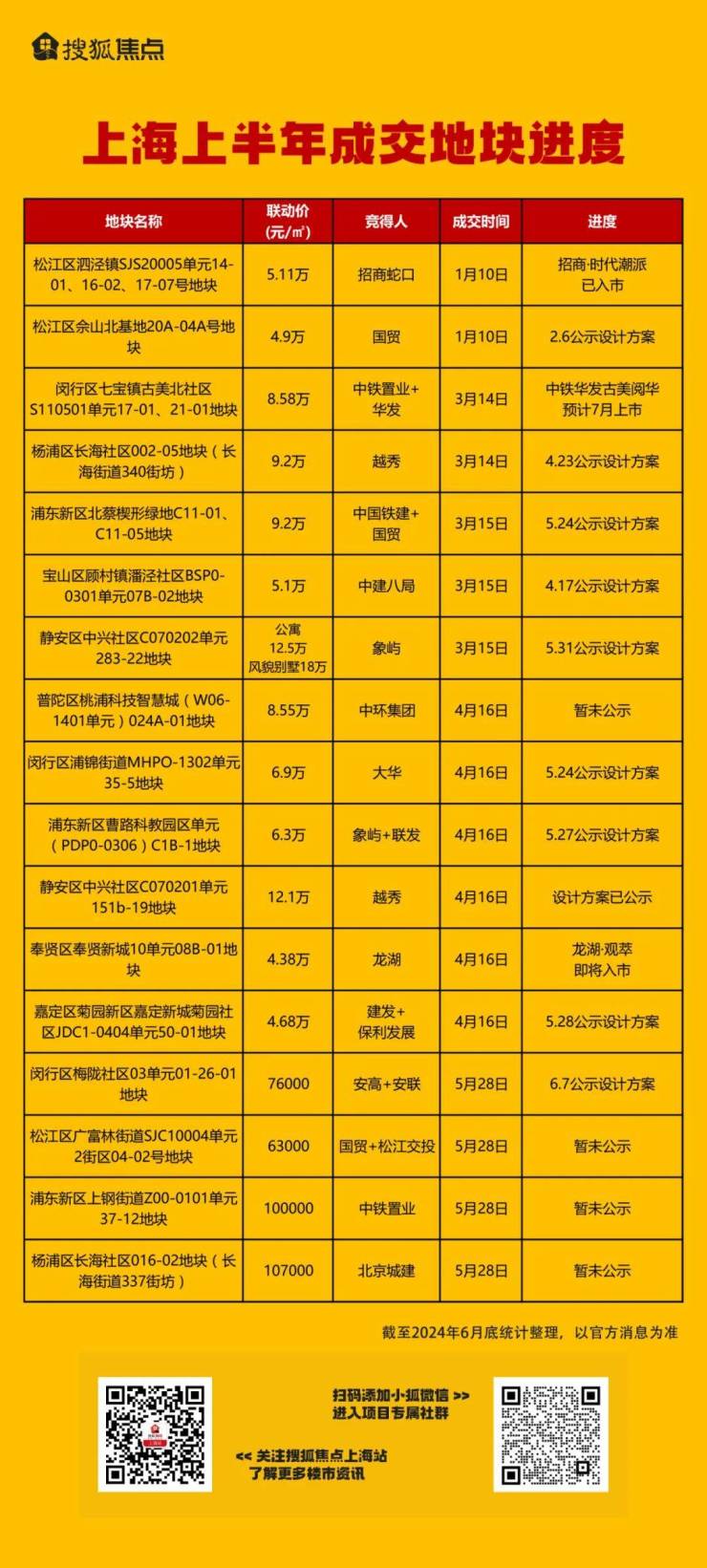 2024年上半年接近尾声,而上海上半年的土拍其实早在5月底已提前收官。