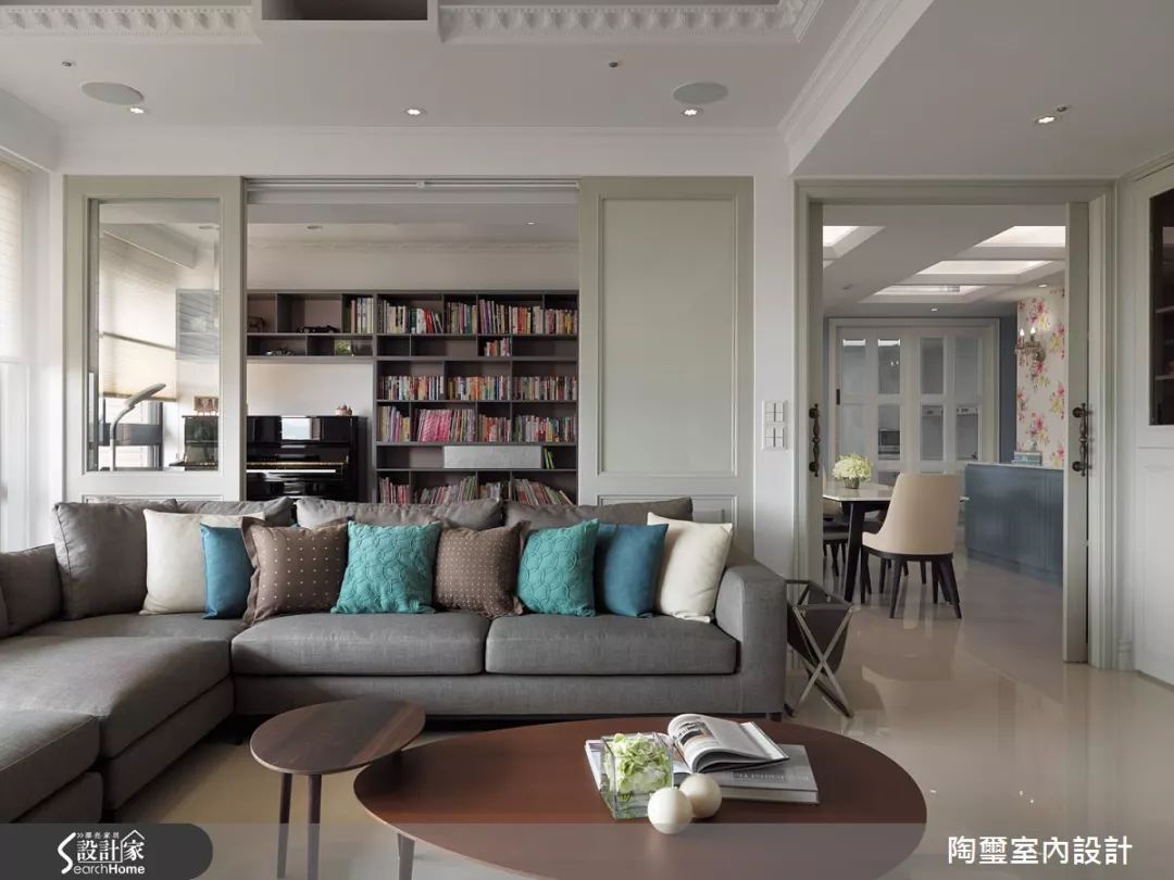 温馨优雅的新古典欧式居家,使用环保健康的绿建材,打造无毒居家,厅以轻透玻璃区隔客厅、餐厅与书房,在书房内放置钢琴,欲弹奏时,清玻璃推拉门可以选择阖上或开启,能独立使用也不会影响其他人。而造型对称的玻璃圆拱门,也增添异国风情。