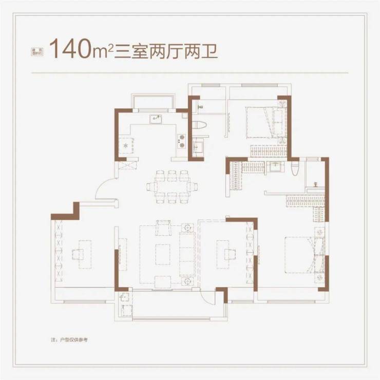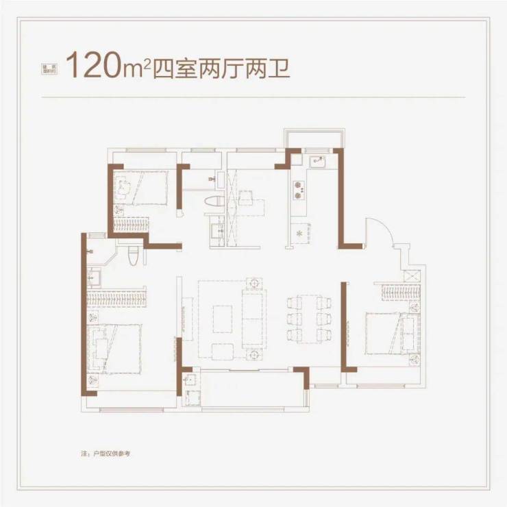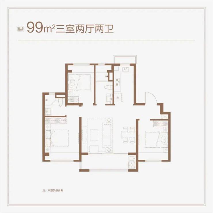 本批次主力户型建面约99-140㎡3-4房,户型上全部采用南向大开间横厅的“爆款”设计。户型图如下: