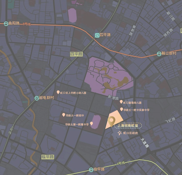 招商虹玺位于虹口内环内临平路板块,虽不在北外滩规划范围内,但距离周家嘴路直线距离仅约600米,属于北外滩辐射圈内。
