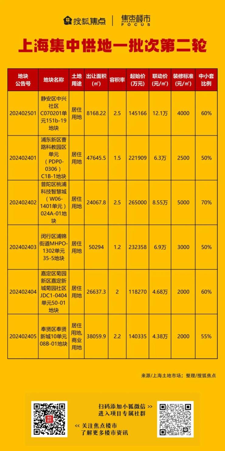 近日,上海集中供地一批次首轮刚刚落幕,一批次第二轮紧随其后发布公告,将出让6幅涉宅地块,分别位于静安中心社区、浦东曹路、普陀桃浦、闵行浦江镇、嘉定菊园、奉贤新城。总出让面积19.49万平方米,起始总价为112.3038亿元,现场交易会预计于4月16日开始举行。