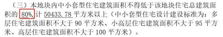 一批次首轮出让的地块中,对中小套的比例要求为60-80%不等,对于中小套型住宅设计建设标准均为:多层住宅建筑面积不大于90平方米、小高层住宅建筑面积不大于95平方米、高层住宅建筑面积不大于100平方米。