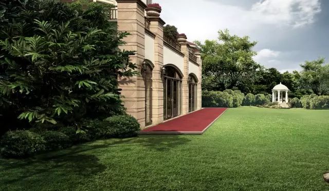 再看入户大门,1.8米双开门,高门大户,与文艺复兴时期梁柱、拱圈搭配,庄严对称。六级台阶拾阶而上,象征家庭顺利和谐,事业蒸蒸日上。