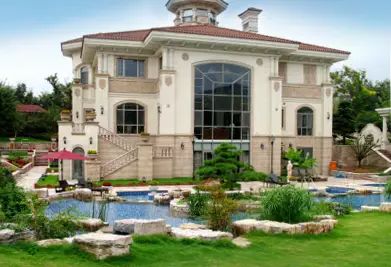 换个角度,看下房屋正面,浮雕、廊柱、穹顶、大面落地窗……浓郁的意大利风格,庄严宏伟的同时又融入了现代浪漫元素。