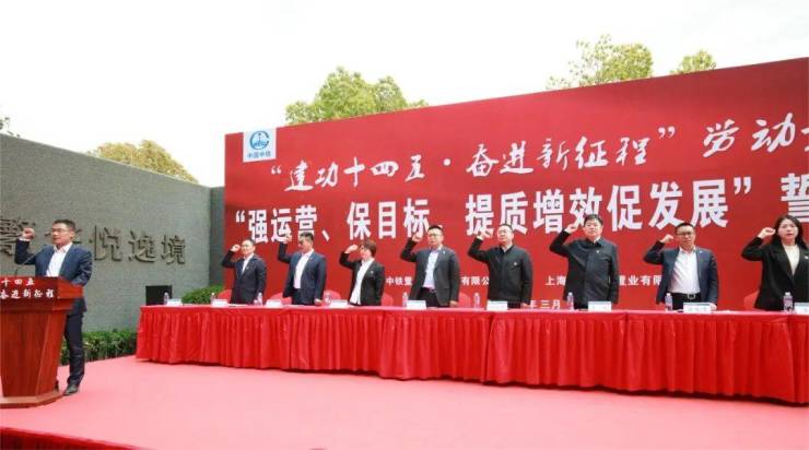 上海中铁虹桥逸都项目启动“建功十四五 奋进新征程”劳动竞赛,隆重举办启动大会誓师仪式。