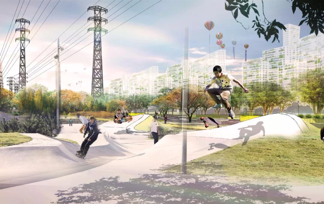 积极利用场地内不利要素,用主题植入,屏蔽、构筑物等设计手法进行设计激活,是区域内的土地价值不受影响,同时增加城市空间的吸引了。