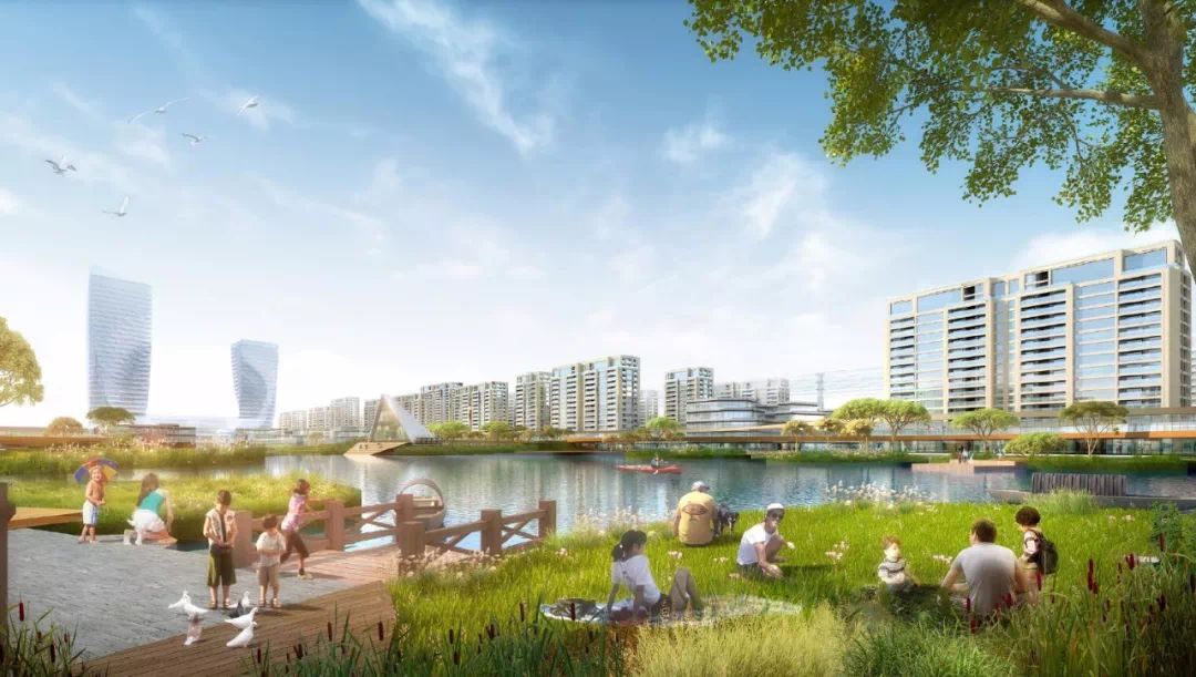 最后,让我们一起来看看封浜新镇规划之后的效果是什么样子的:
