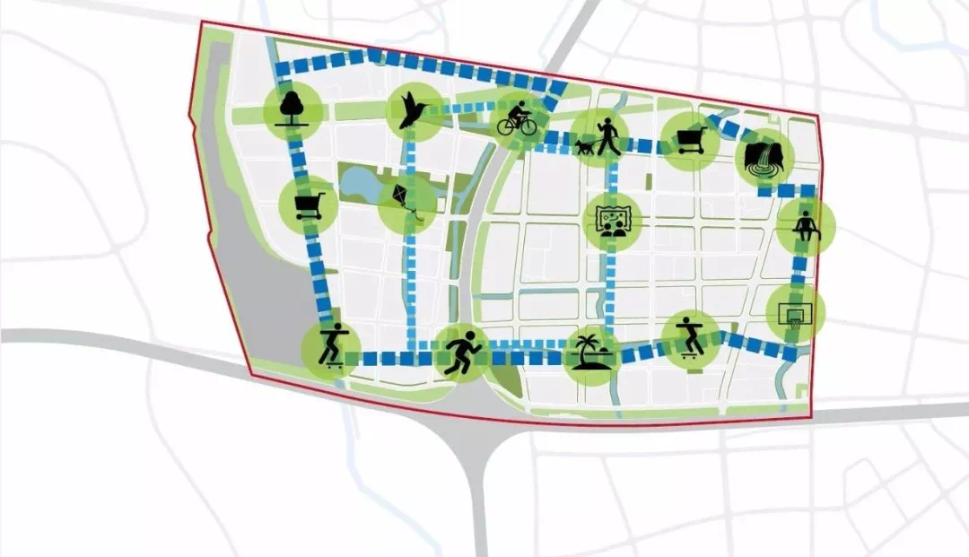 嘉闵高架阻碍,较大限度提高区块整体性,并创造东西向文化休闲走廊,制造连续性的慢行系统与功能分布。