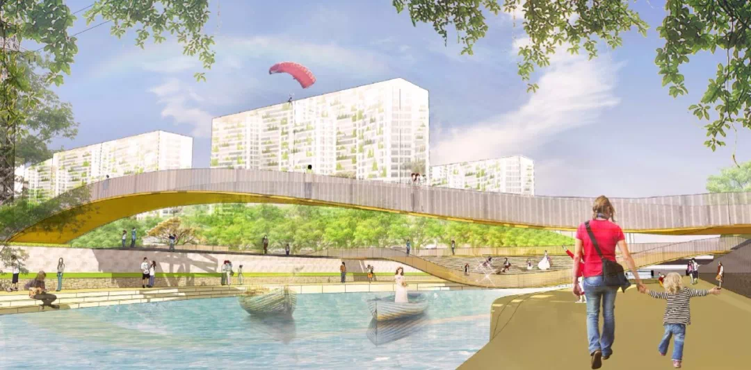 设计策略4——绿水环城,水系贯通,形成多层级嵌套式滨水驳岸空间与城区生态系统