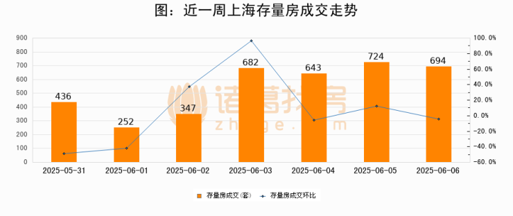 【上海成交日报】06月06日二手房694套;涨价房源174套