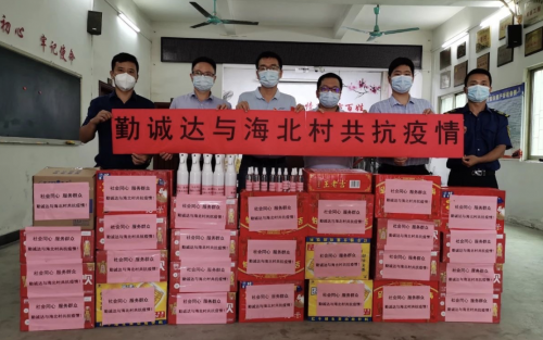 5月底广州疫情突发变化,由于此次疫情来势突然,在得知街道等部门迫切需要消毒液、体温枪、口罩等防疫物资,勤诚达集团物业海北项目负责人杨国斌紧急筹备了免洗手液、酒精消毒液各10箱,84消毒液5桶,一次性医用口罩50盒,安排同事分赠到村委和区政府处,为抵抗疫情,主动出力。
