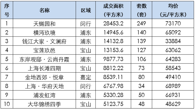 基于交易结构多向中低价位靠拢,10万+产品缺席榜单,均价出现回落,为59071元/平方米,环比下跌21.21%。