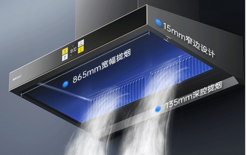 这款油烟机,采用的是深腔立体拢烟技术,拥有865mm宽幅拢烟,135mm深腔拢烟,立体拢烟腔将拢烟能力从水平到垂直方向形成立体拢烟空间,做饭时刚刚产生油烟就会被牢牢的锁在这个立体拢烟空间中,让油烟无法逃蹿出这个空间,这样就能确保,油烟会被全部被油烟机洗干净,让厨房无油烟。