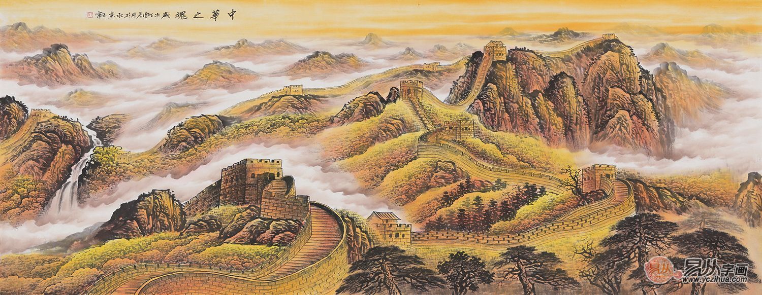 金色长城取象中华巨龙,风水暗示:有靠山,有龙脉绵延千里,这幅长城画云雾缭绕、藏风聚气,象征自己未来的事业将风生水起。