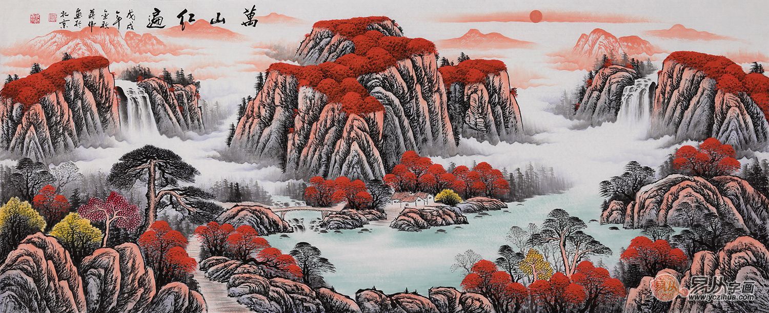 六、鸿运山水画,万山红遍,鸿运高照,福泽长流!