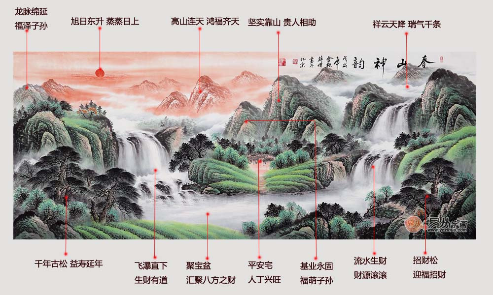 二、聚宝盆山水画:福禄寿喜财兼具,招财纳福,催旺家庭运势!