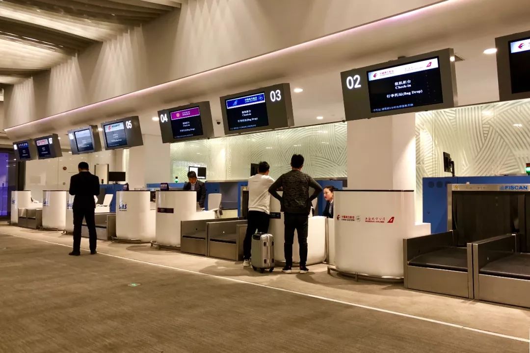 ▲ 当然你也可以选择人工服务,并且在此托运行李。现场有8个柜台,提供12个航空公司的值机服务。