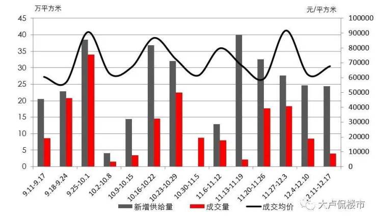 上周楼市交易继续下滑,据上海中原地产数据显示:上周(12.11-12.17)新建商品住宅成交面积3.97万平方米,环比减少53.07%。