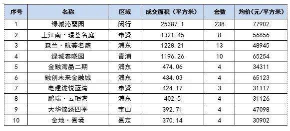 从产品交易格局来看,首次改善产品继续占到重要比重。“3字头”“4字”的低价产品数量明显增加,成交前十榜单中有6个这种产品。上周高价房继续缩水,10万+项目榜单中消失,也是为数不多的现象。上周市场分化较为严重,成交排名第一的楼盘是梅陇春申板块的绿城沁蘭园,成交2.54万平方米(238套)。而榜单其余项目的签约都在15套以内,而且大部分楼盘签约是个位数。