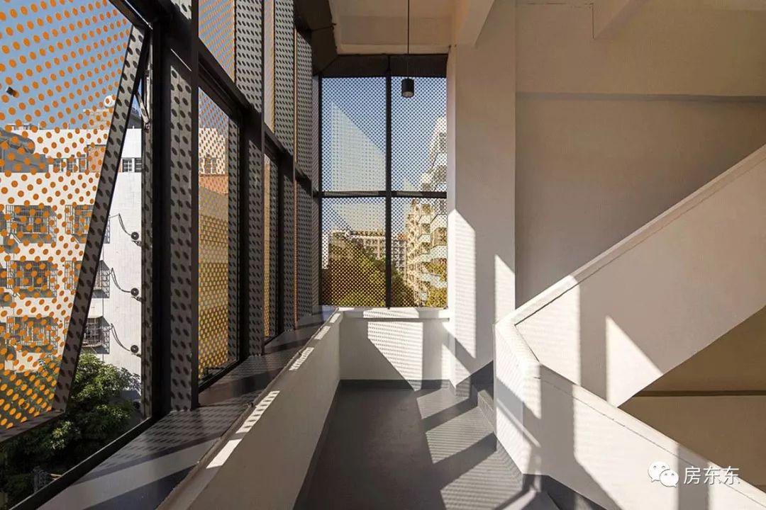 可以考虑使用百叶和穿孔金属板,在阳台、走道外部或者窗子局部进行百叶或者穿孔金属板的设置