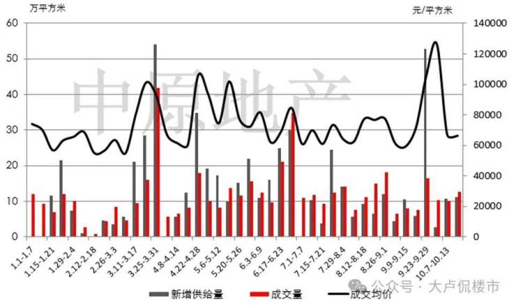 上周楼市成交进一步放大,据上海中原地产数据显示:上周(10.14—10.20)新建商品住宅成交面积12.71万平方米,环比增加25.32%。