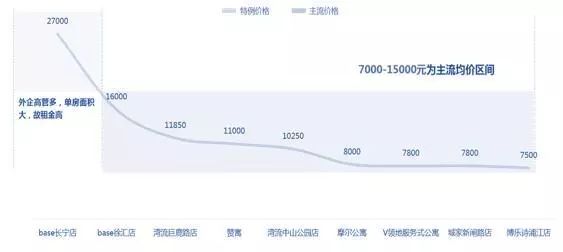 从租金来看,主流出租价格在7000 - 15000元。中高端公寓的定价策略,是对标同区位及地段的中高端住宅小区,在空间、装修、配置、配套以及服务方面进行品质升级,产品本身就存在溢价空间。如湾流中山公园店和巨鹿路店,均位于内环内核心城区,商办物业改造,在产品装修水平及配套服务上,超越周边住宅市场,其月租金接近周边两房的整租价格。
