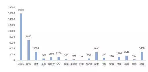 2017年调研数据:上海中高端公寓主体房量(单位:间)