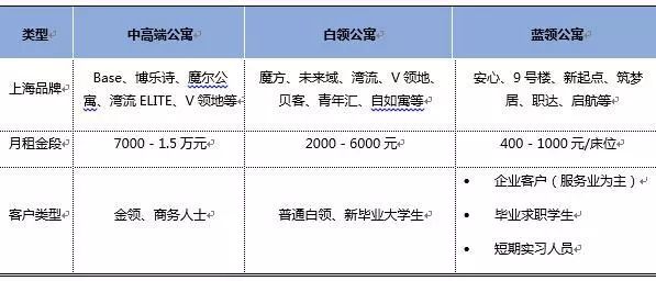 蓝领公寓由于上海地方政府对群租和消防管制,发展受限,暂不研究。