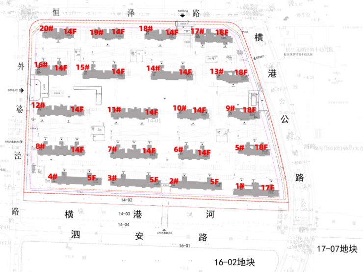 公示的是14-01地块的住宅项目,地块拟建20栋住宅;其中2#、3#、4#,三幢是5层的多层,其余为14-18层高层,17号楼为保障房。