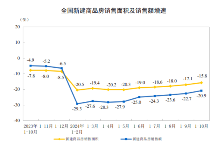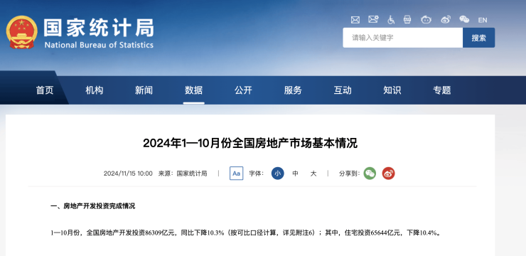 11月15日,国家统计局发布2024年1—10月份全国房地产市场基本情况。