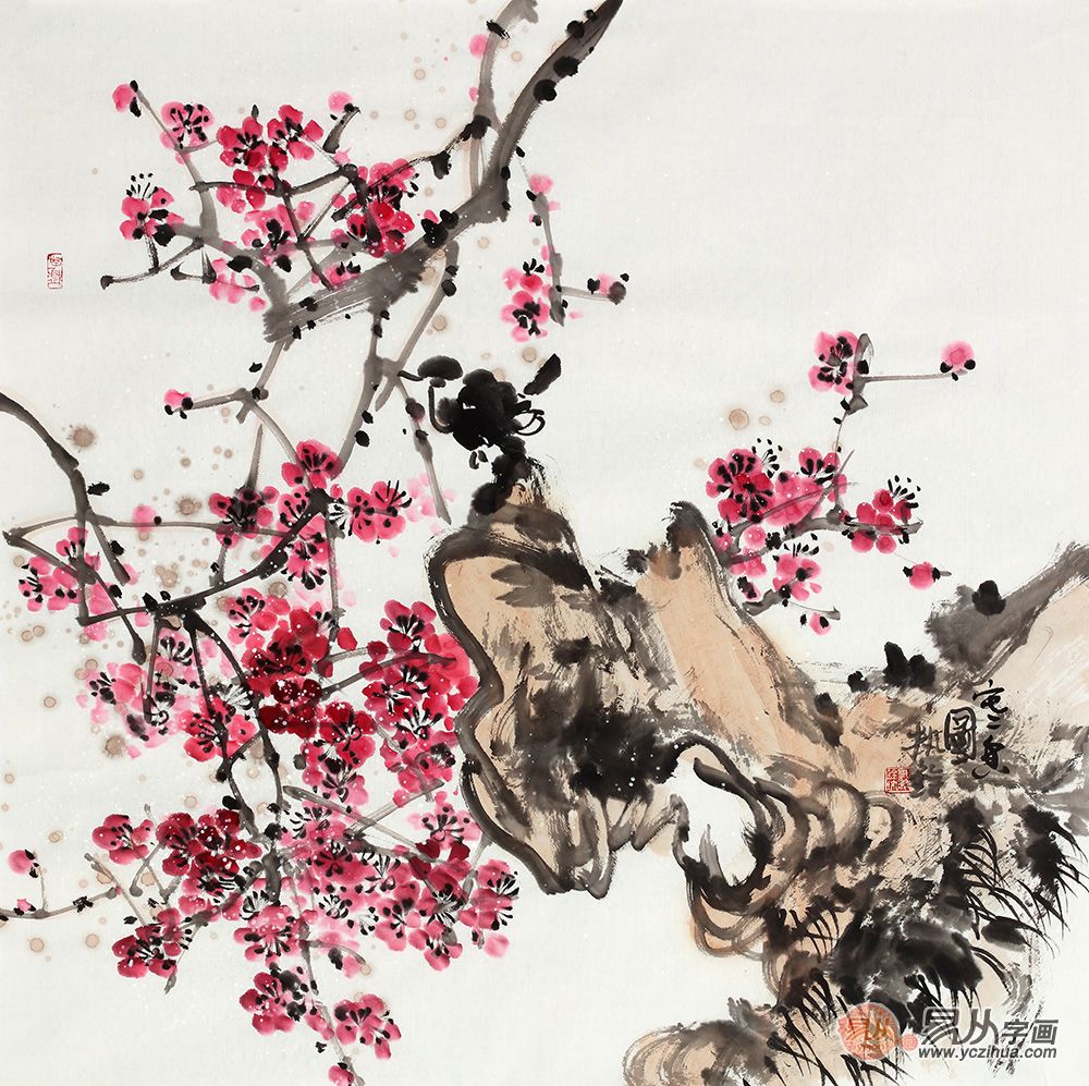 梅花,迎雪吐艳,凌寒飘香,以其冰肌玉骨、凌寒留香被喻为民族的精神而为世人所敬重,它是中国的传统名花,在各地存在着千年古梅的传说,在民间更是有“花开五福”的说法, 五个花瓣分别代表福、禄、寿、喜、财等吉祥神,在一进门玄关处挂一幅梅花图,这可谓开门惊喜!