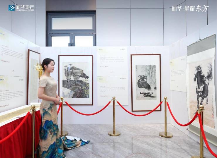 随着活动的持续深入,营销中心的内部现场特地准备了徐悲鸿先生的真迹作为展品,以及联合金山书协,同步举办的名家书法作品展。每一幅画作都蕴含着徐悲鸿先生对匠心、对世界、对艺术的思考,每一幅书法,都能从笔锋周转中窥见大美东方。这场别具韵趣的艺术展,引得众嘉宾驻足欣赏。