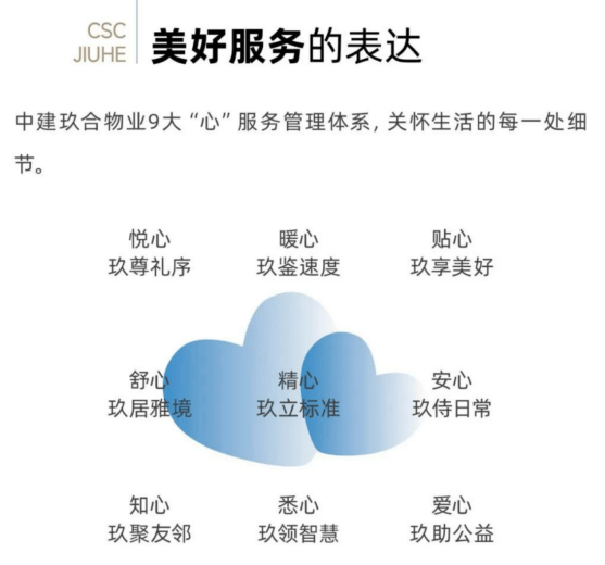 在住宅服务领域,中建玖合物业坚持人本关怀的安心体验,建立6大标准化服务体系,与9大“心”服务管理体系,守护每一片家庭的美好生活。