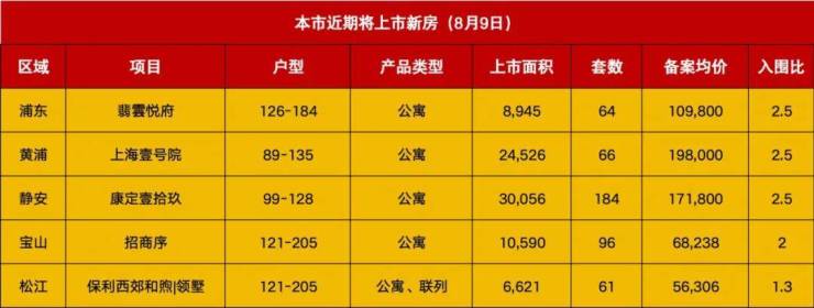 8月9日,网上房地产官网公示最新过会名单,共5个项目,分别为翡雲悦府、上海壹号院、康定壹拾玖、招商序和保利西郊和煦|领墅,分布在浦东、黄浦、静安、宝山和松江,均为老盘加推,合计可供应471套新房。