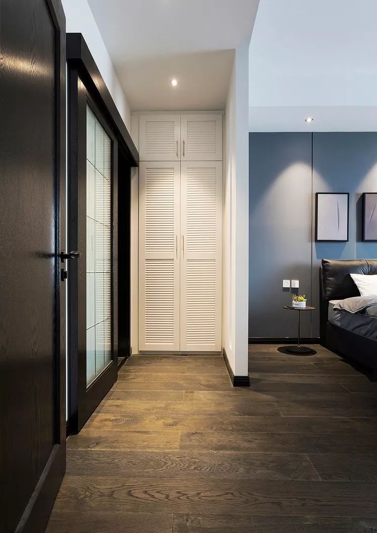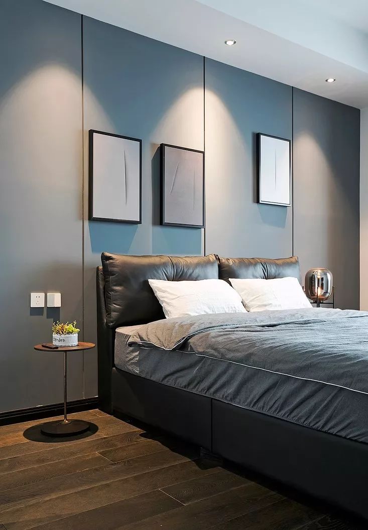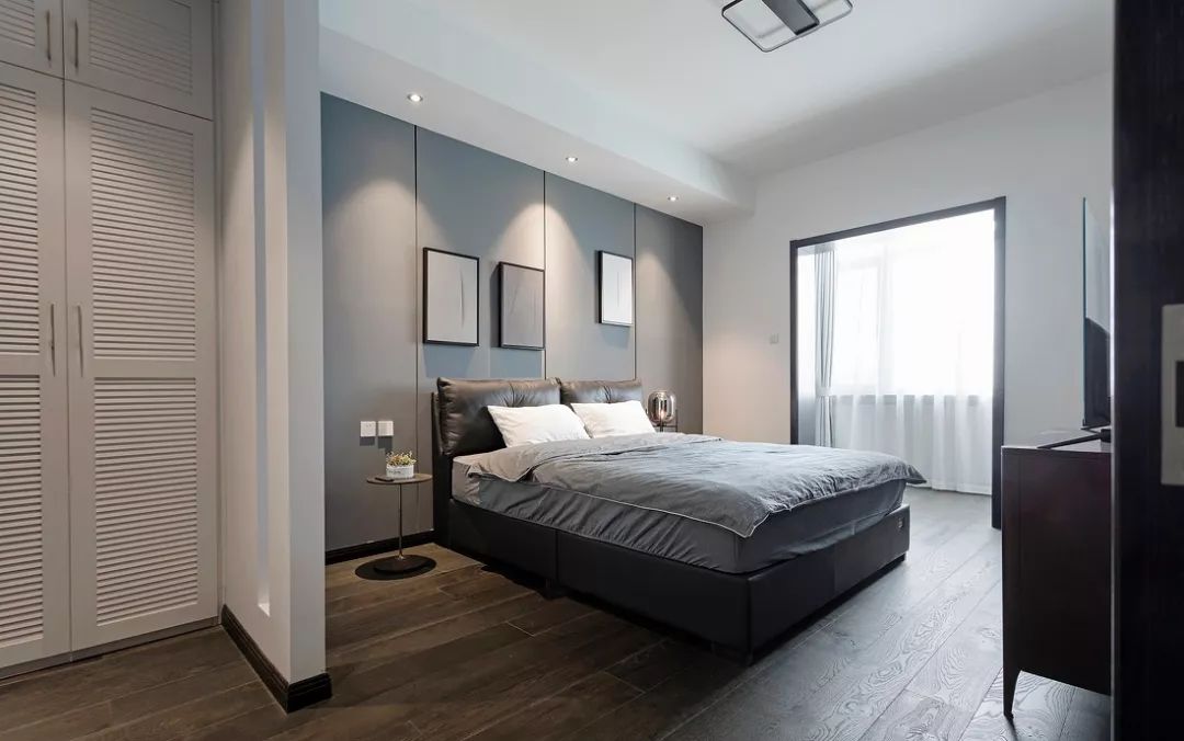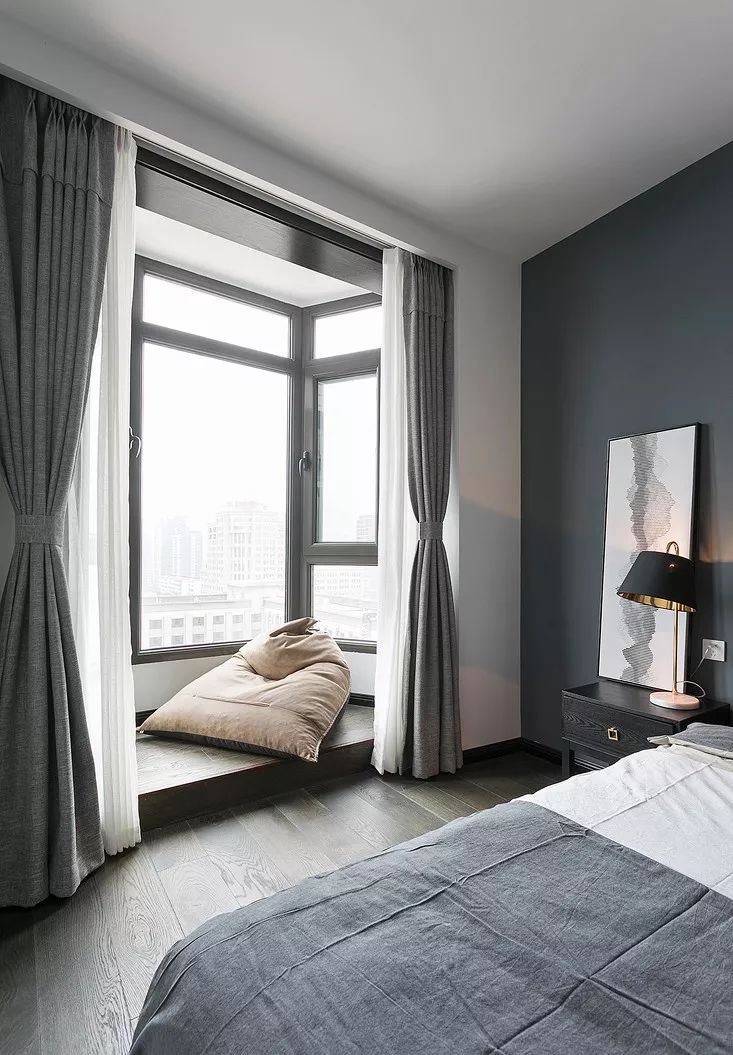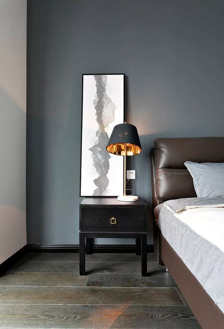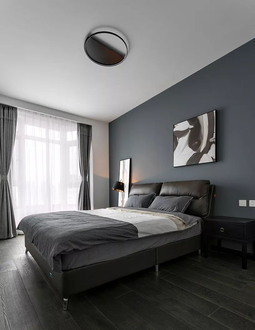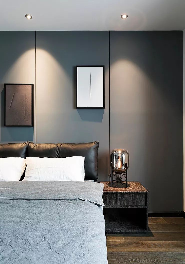 ▲ 次卧白色和大面积深灰色墙面,视觉上扩大空间面积。